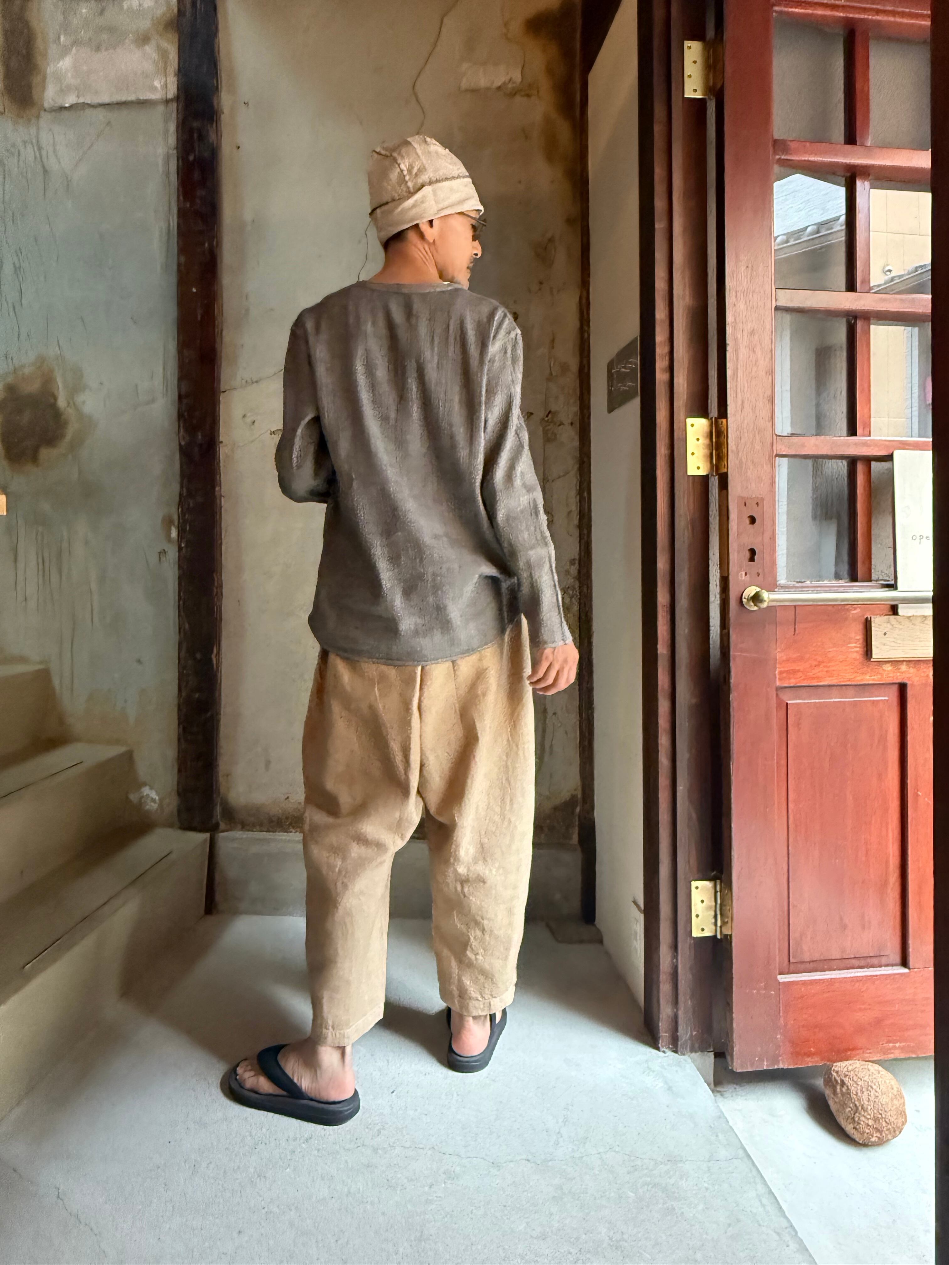 逆にあまり折り返さずに高さを出したり、そこをクシュっと潰して斜めに寄せたり、と様々な形をお楽しみいただけます。