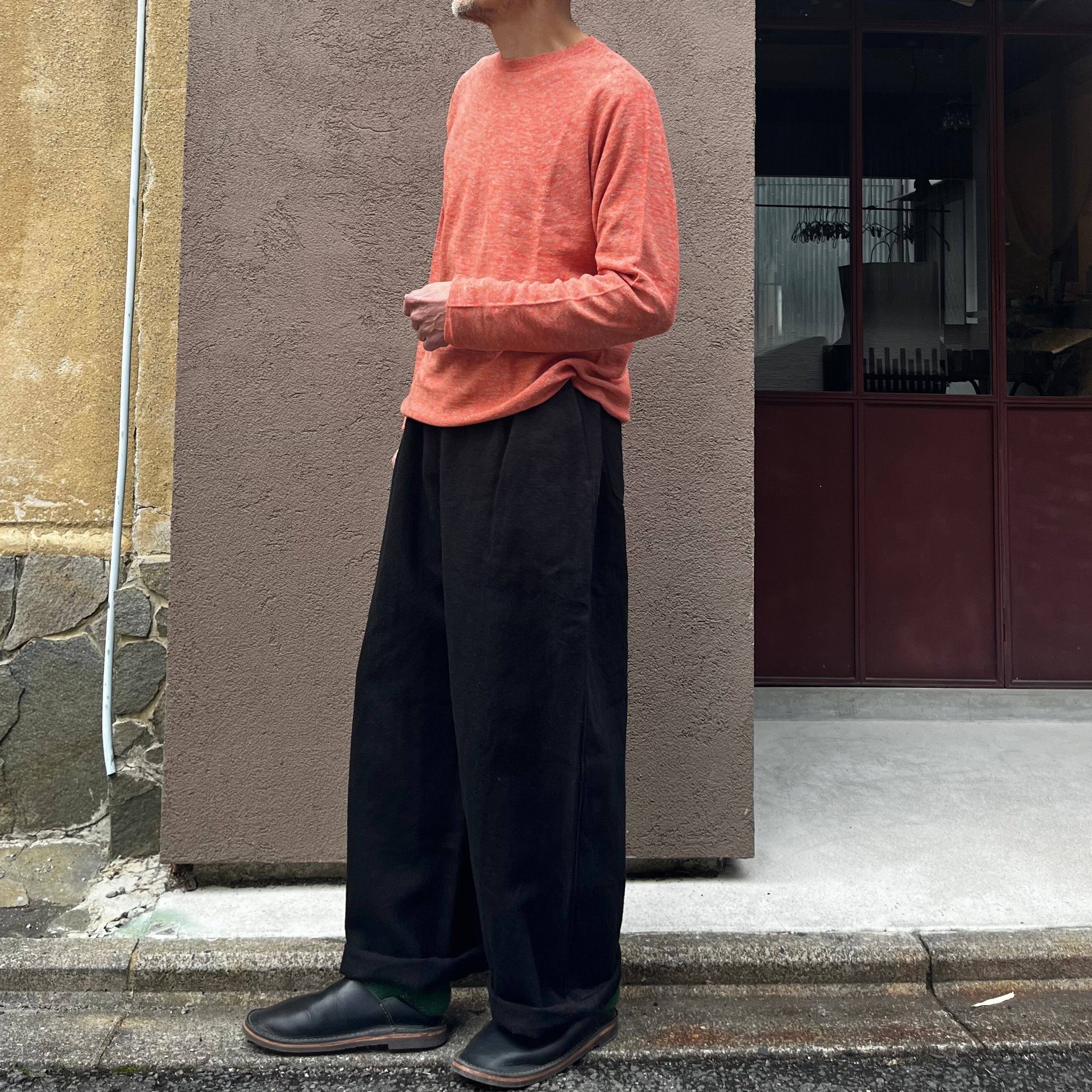亜麻苧麻ロングのようなシャープなテーパードではなく