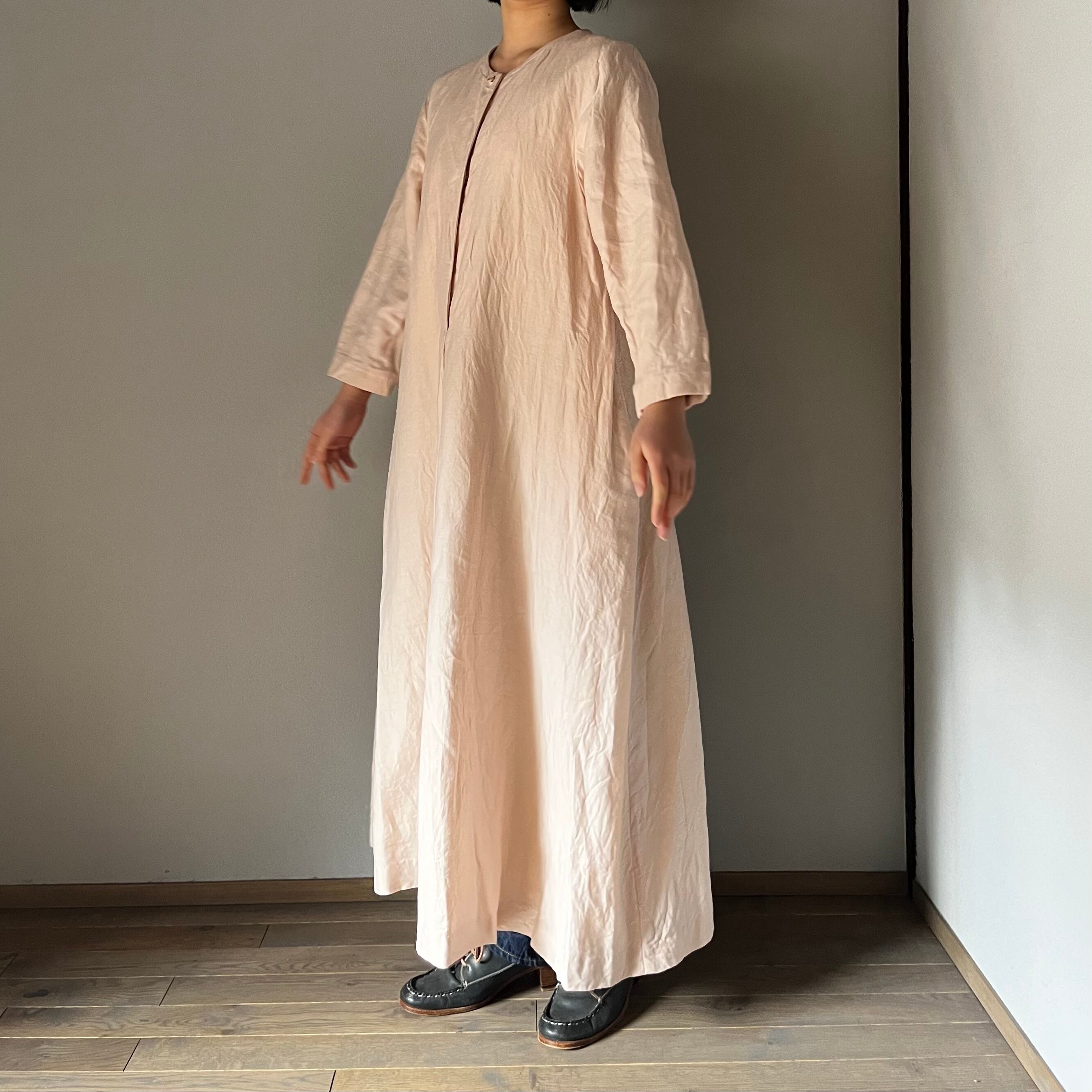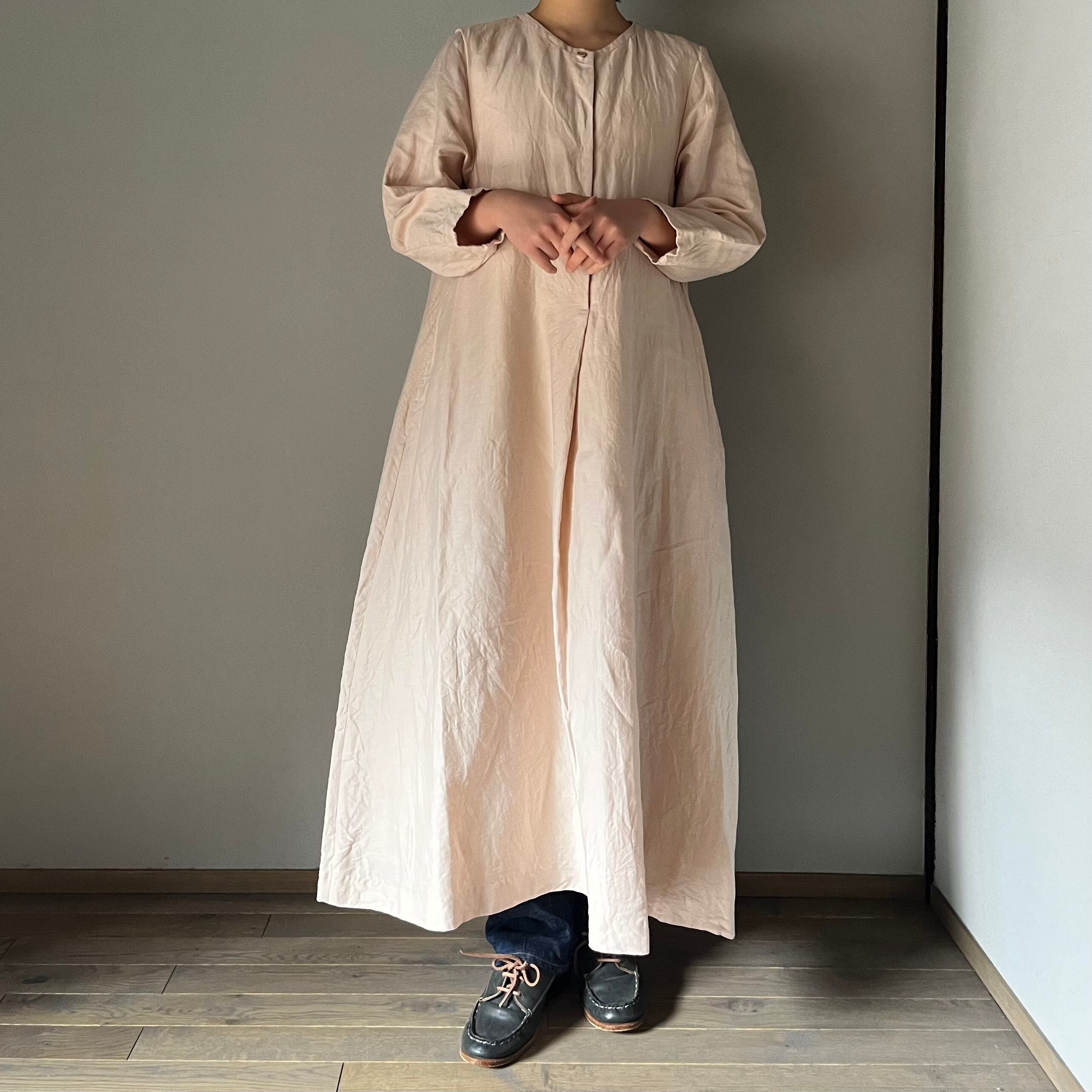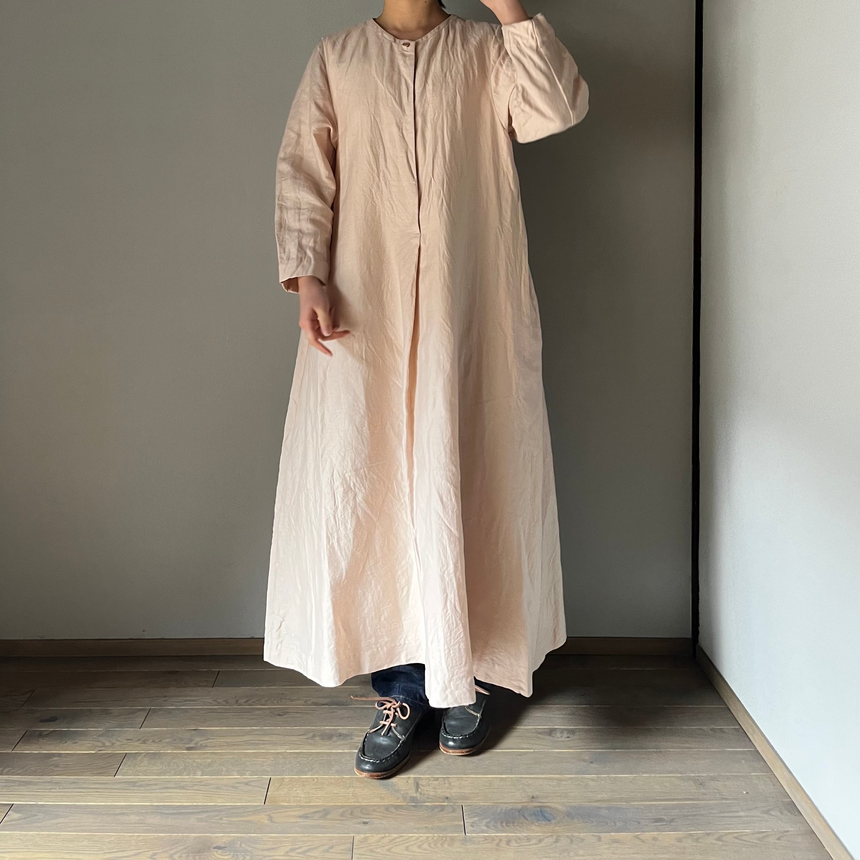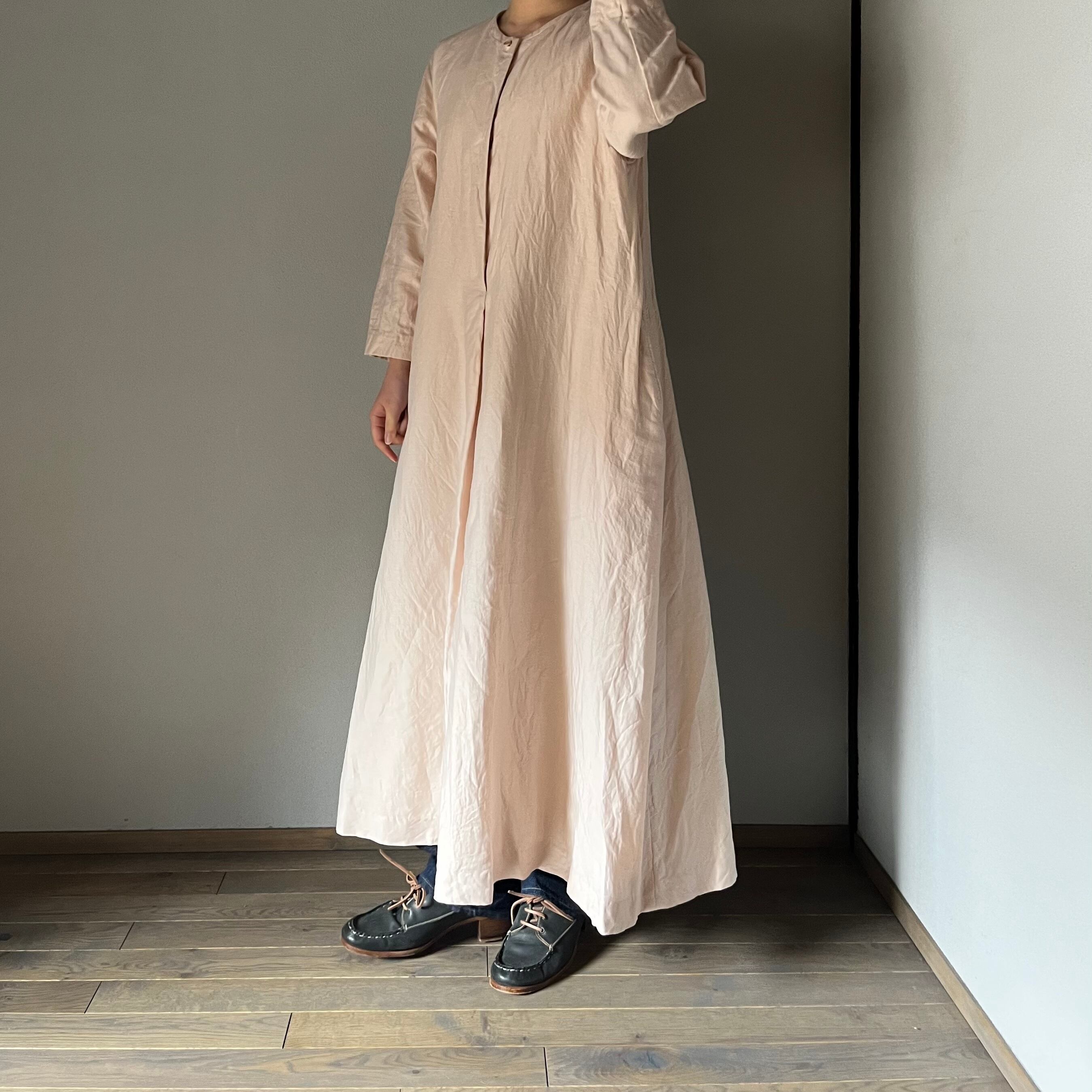 生地はコットンリネンのホワイトの生地にボタニカルダイで淡いピンク色に染め、自然で上質な質感が大人びた可愛さです。
