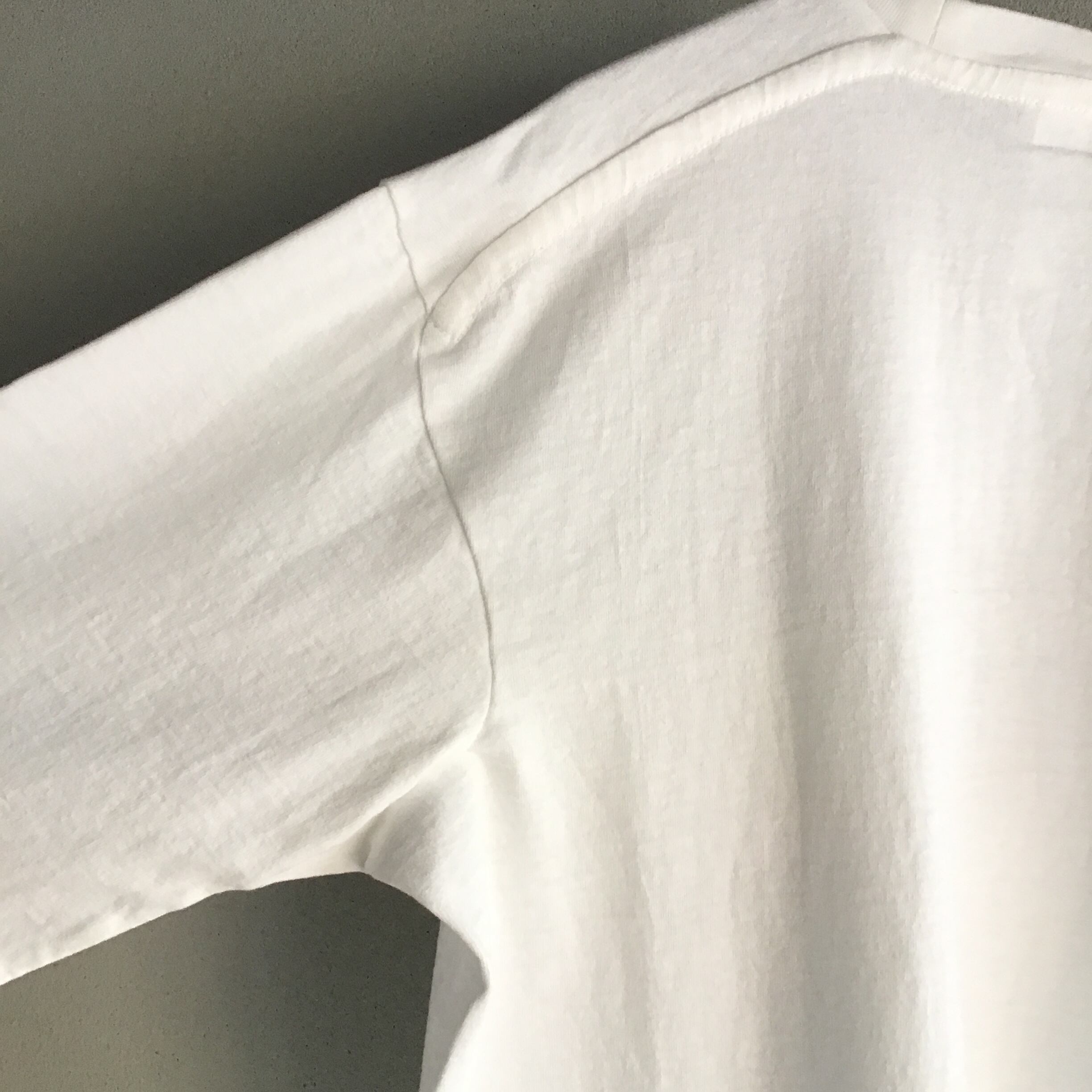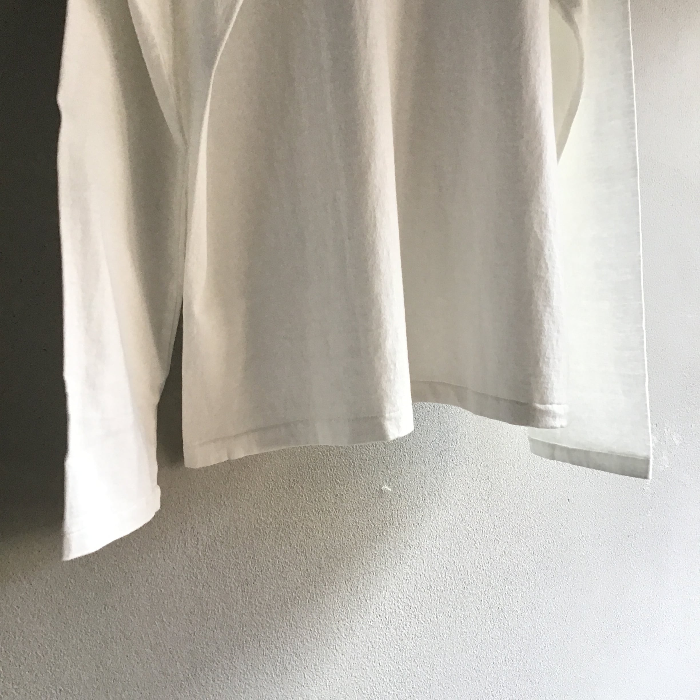 ヤエカの定番、クルーネックTシャツの長袖。筒状に織り上げるloop Wheeled製法で脇に縫い目がなく、肌にストレスのないやわらかい生地。夏場にアウターとしても、またオールシーズンのインナーとしても、使い勝手の良いTシャツです。