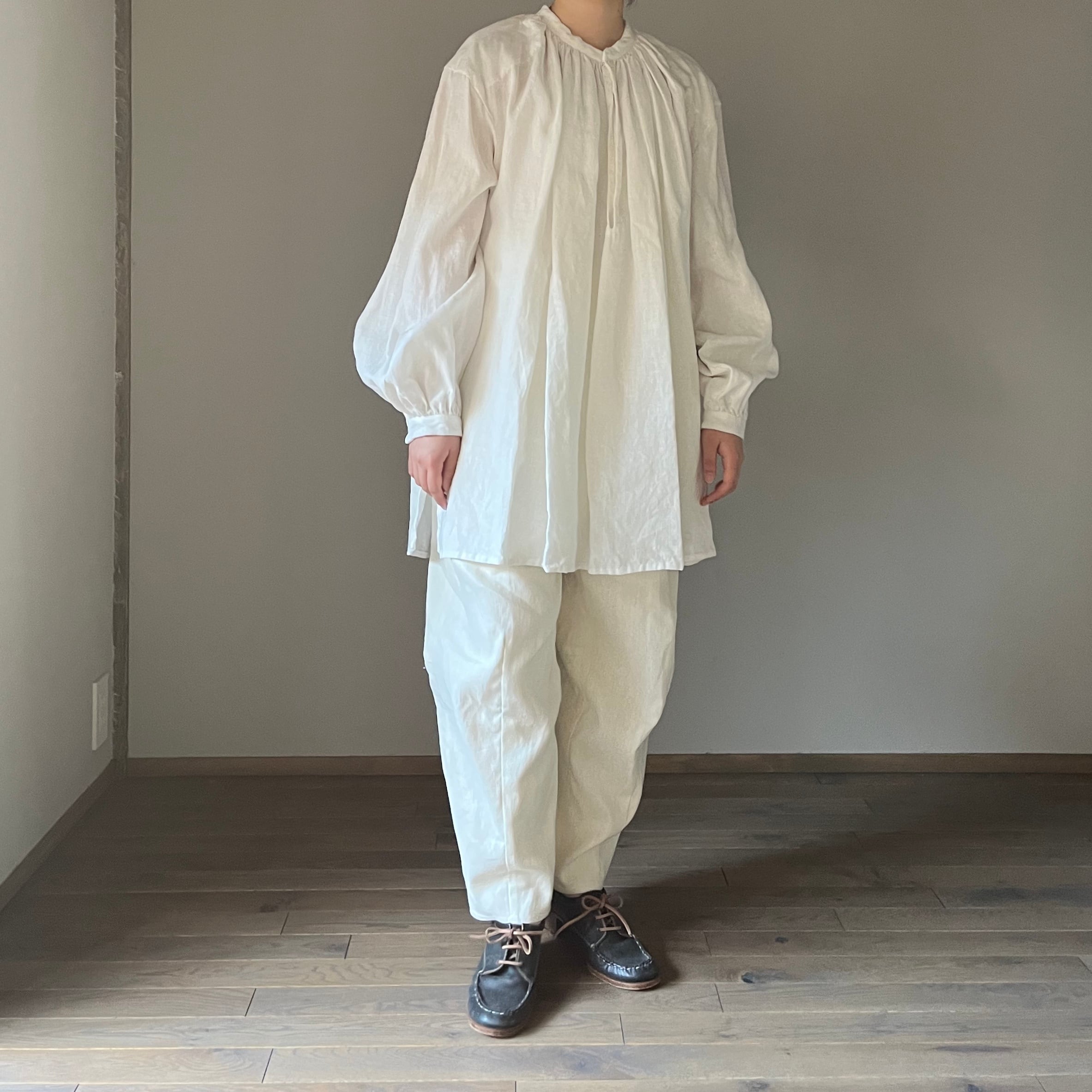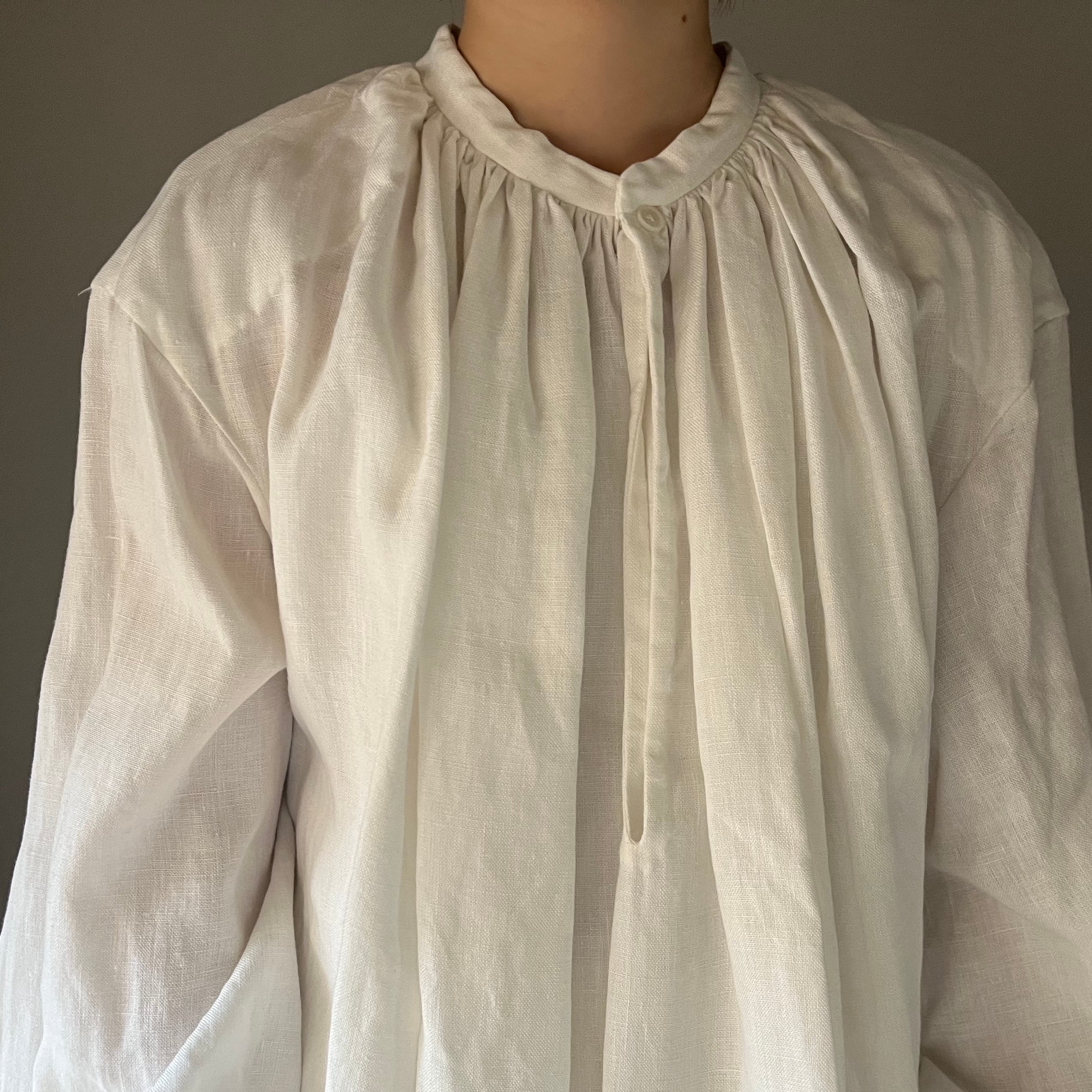 YAECA / ヤエカ ギャザーブラウスロング WHITE 1 #44106 LINEN