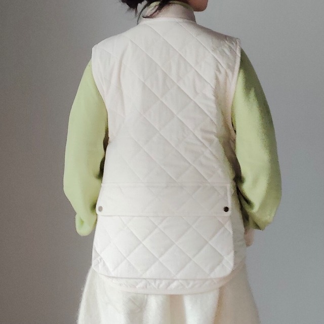 コットン生地にポリエステルの中綿入りのキルティングのベスト。