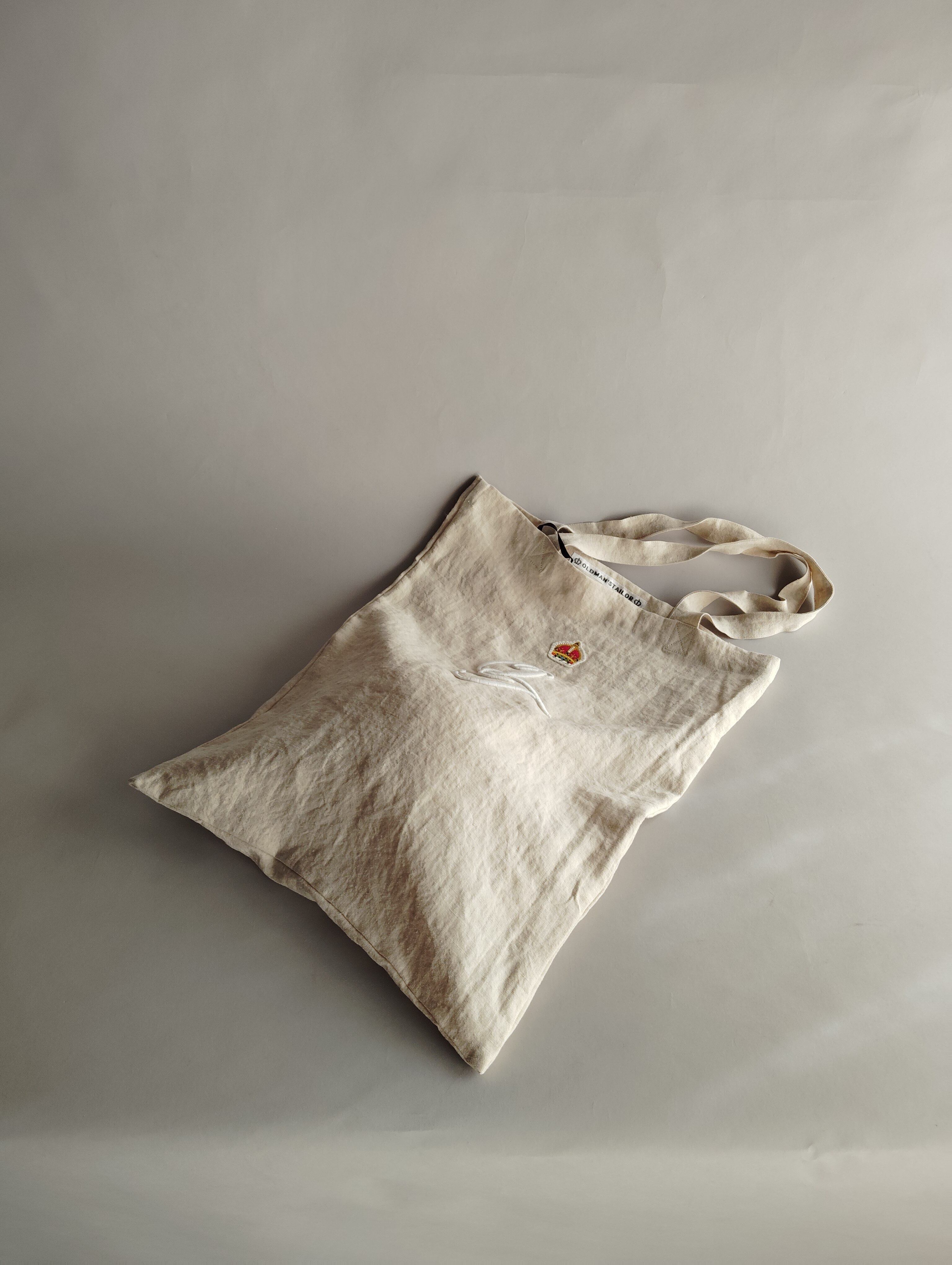 ヘンプ100%の布製で、生成りの色味と洗いざらしたようなラフな質感が良い雰囲気です。