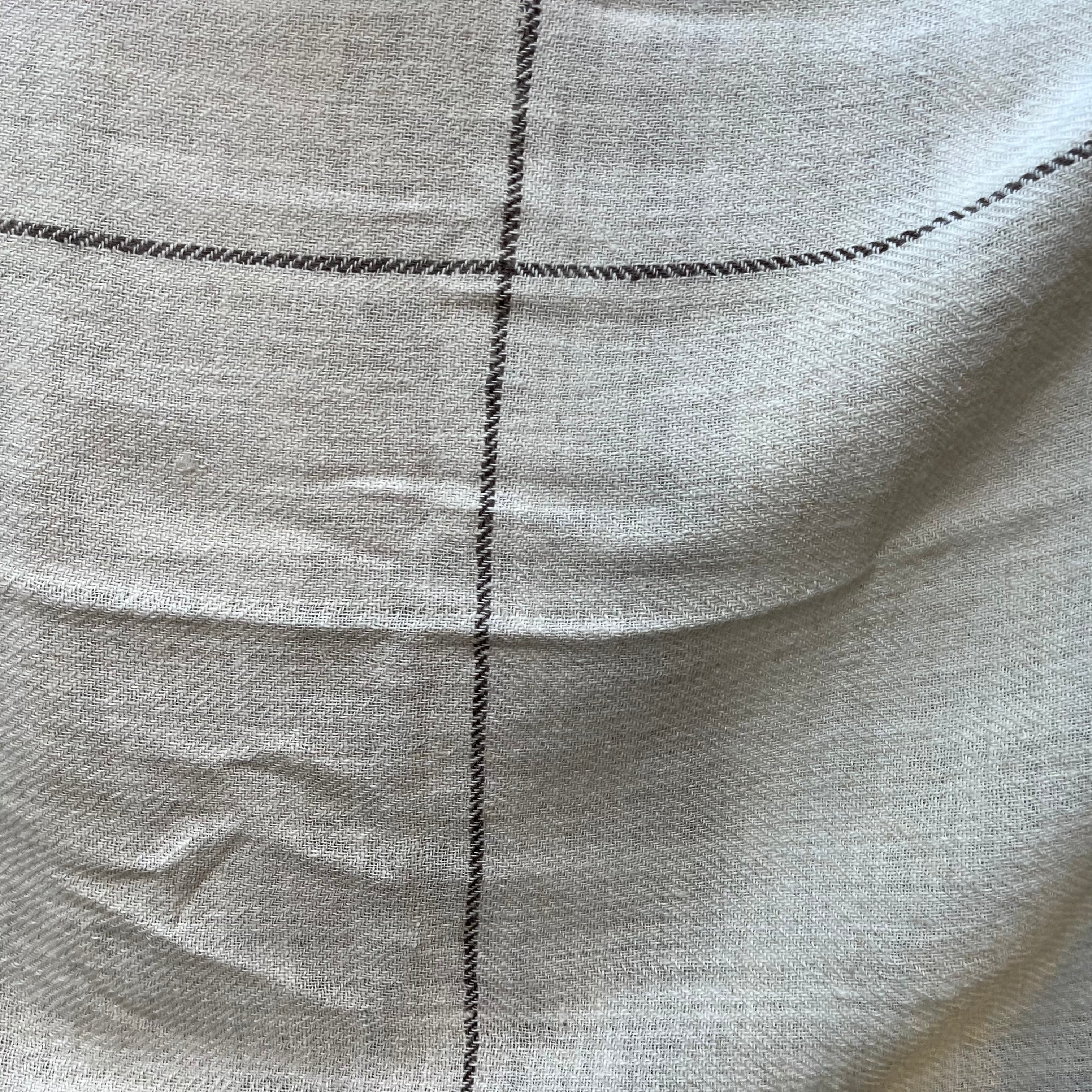 PUENTE/プエンテ 手紡ぎアルパカ手織りショール #RT-11 ホワイト/ライン杢ブラウン