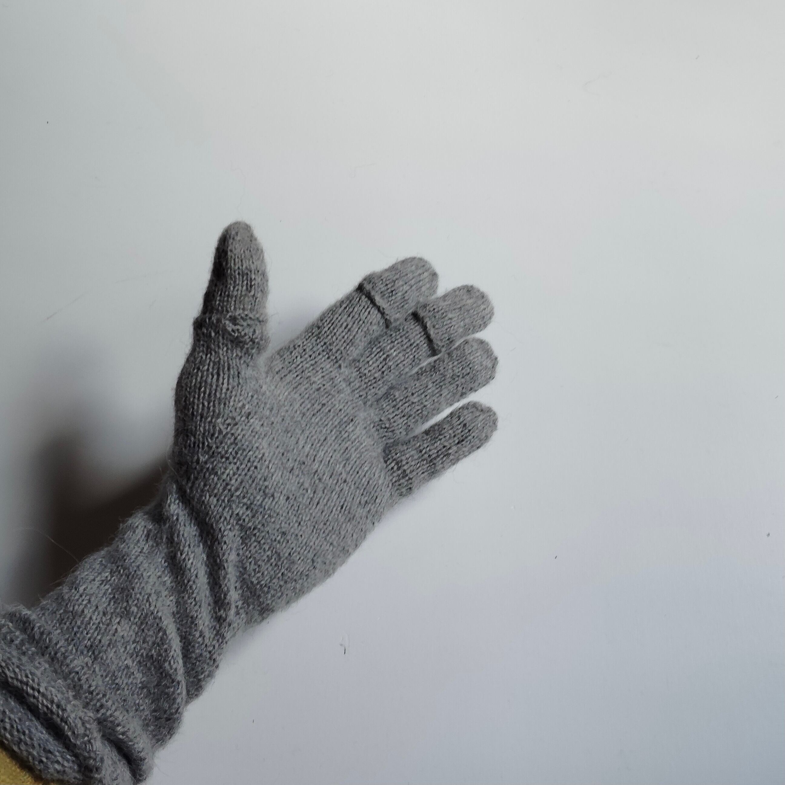 手首のところが長めに作られたロング手袋なので、袖口にクシュっとたぐませることもできてとても暖かいです。